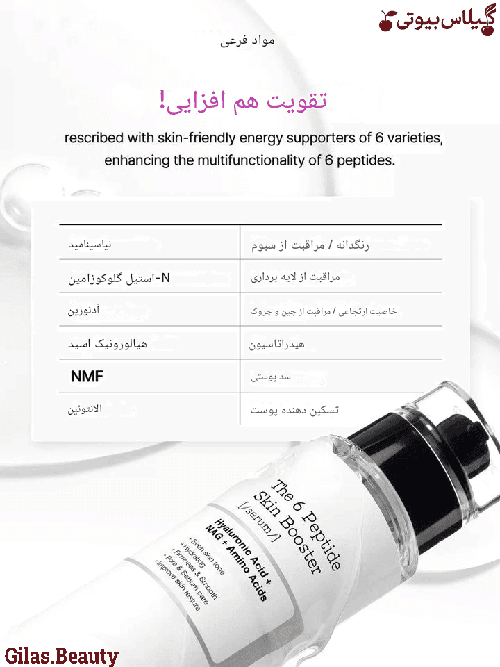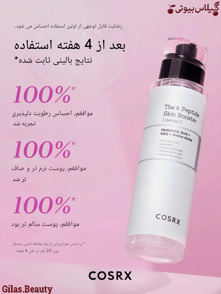توجه: برای بهرهمندی از همه مزایای این محصول، پیشنهاد میکنیم همین حالا خرید سرم بوستر تقویت کننده 6 پپتاید کوزارکس اصل را از فروشگاه گیلاس بیوتی با ارسال رایگان برای سفارشهای بالای سه میلیون تومان، انجام دهید!