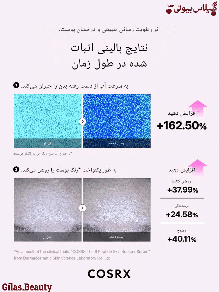 نتایج اثبات شده سرم بوستر 6 پپتاید کوزارکس آبرسان و ضد چروک