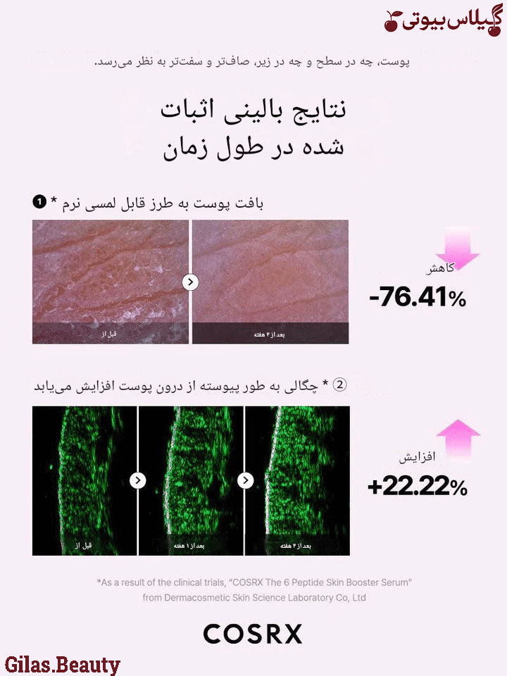 - 76.41% بهبود در بافت پوست (ناهمواری)